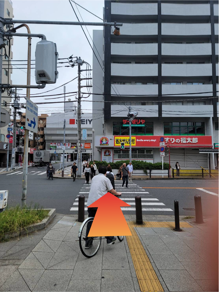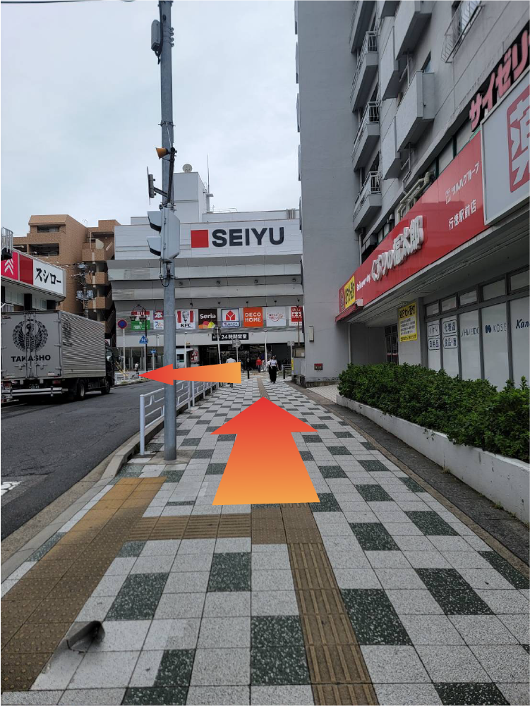 ⑤SEIYUに突き当たるまで進みます。突き当たったら、左へ曲がります。